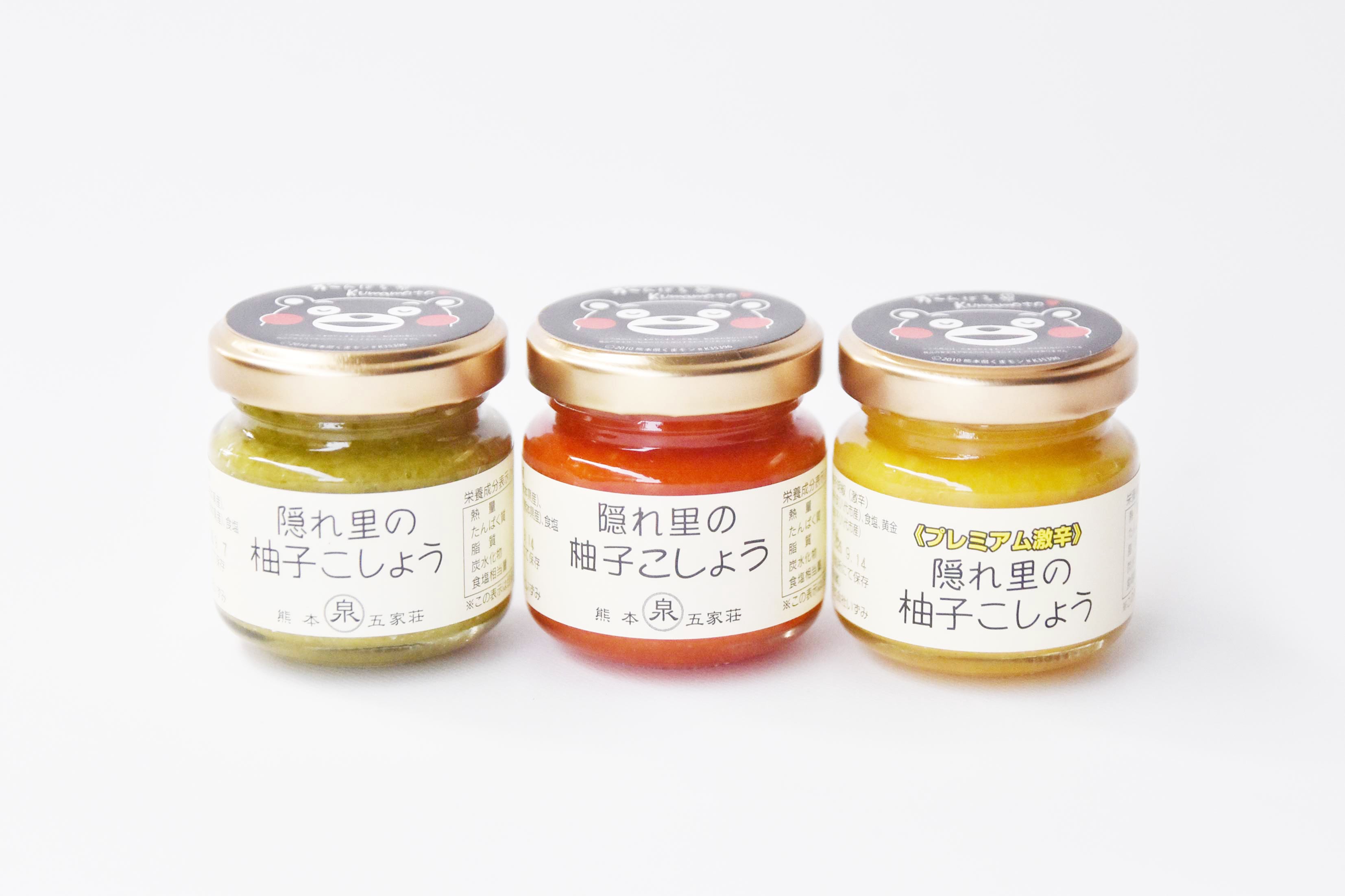 八代市泉町産の柚子と唐辛子を使用した、人気の「隠れ里の柚子こしょう」シリーズ。 風味の異なる青・赤・黄色の3色の「食べ比べセット」です。 夏場の青ゆずと冬場の完熟ゆず、青・赤・黄金唐辛子の違いによって生まれる、3色の柚子こしょうたち。 お試し購入にちょうど良い、それぞれ50g入り小サイズです。 それぞれの風味の違い、よく合う料理をお楽しみいただき、あなたのお気に入りの1本を見つけて下さい。 【VJC魅力ある日本のおみやげコンテスト2008 フランス賞受賞】 ※このページからは1~5セットまでのご注文専用となります。 ※5セットまでのご注文は、小型商品配達用の送料がお得なヤマト便「宅急便コンパクト」にてお届けします。 ※6セット以上ご希望の場合や、その他の商品と組み合わせでご注文いただく場合は、お手数ですが各商品のご注文ページから、1点ずつ個別にご注文下さい。その場合は商品の合計重量に合わせたヤマト便「60サイズ~」でのお届けとなります。 ■名称:柚子胡椒 ■原材料名:柚子皮(熊本県産)、唐辛子(熊本県産)、食塩 ■内容量:50g ■保存方法:冷暗所にて保存(開栓後要冷蔵) ■製造者:株式会社いずみ 栄養成分表示(100gあたり) ------------------------ 熱量 60kcal タンパク質 2g 脂質 2g 炭水化物 12g 食塩相当量 22.9g ------------------------ ※この表示は目安となります ------------------------------------------- [特集]これであなたも「ゆず胡椒の達人」 ゆず胡椒のすゝめ https://izumigoka.base.shop/p/00009 [コラム]いずみモノづくり物語 vol.2 (株)いずみ 農林産物流通加工所 https://izumigoka.base.shop/p/00006 ------------------------------------------- #柚子胡椒 #ゆず胡椒 #柚子ごしょう #ゆずごしょう #ゆずこしょう