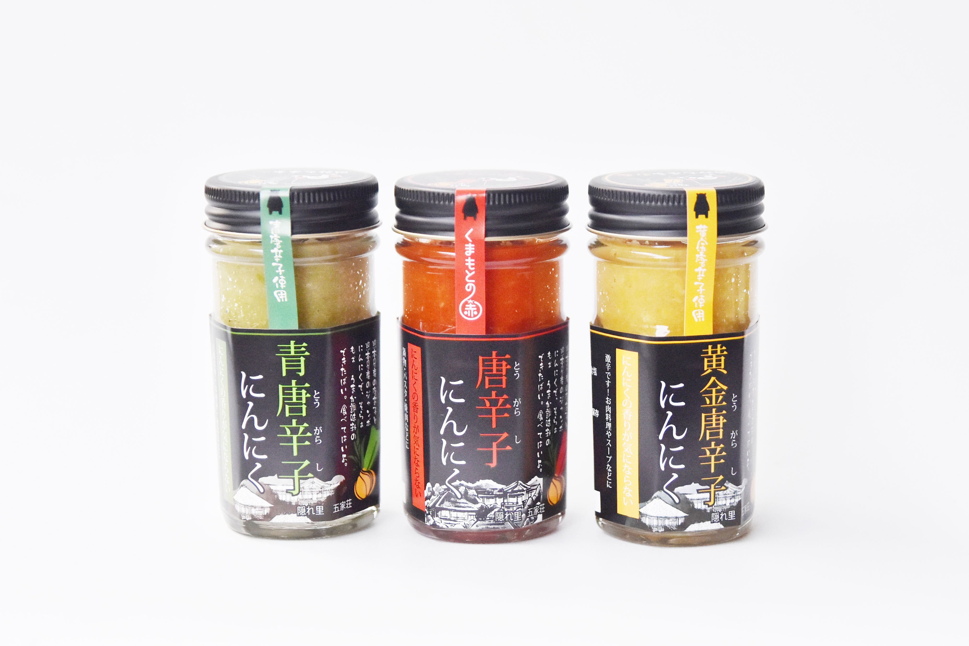 激辛薬味3種 お試しセット 隠れ里の柚子こしょう(黄)×ゆずすぱ(黄)×黄金唐辛子にんにく